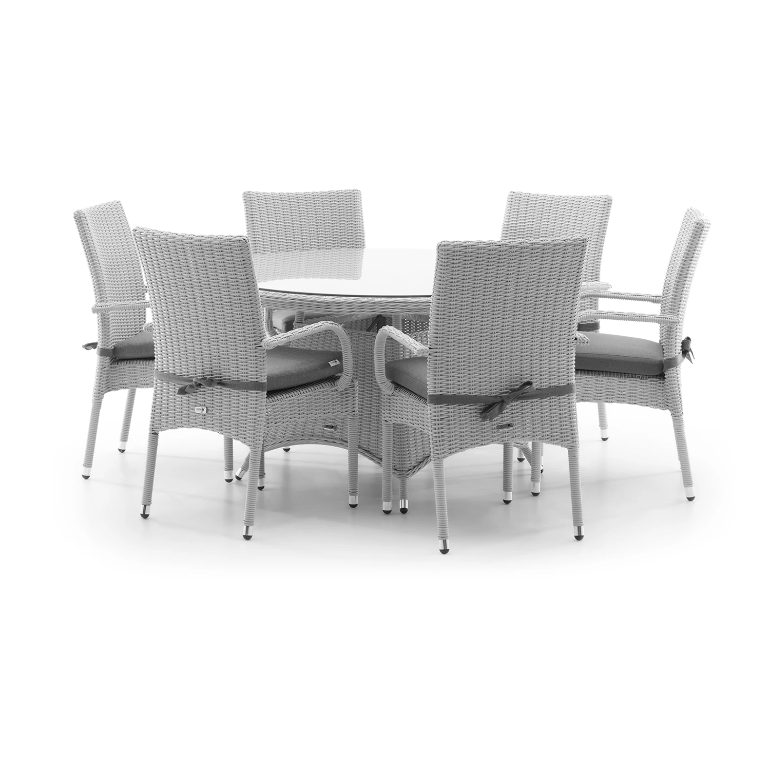 Достаточно одного взгляда на белый, тонкий набор чтобы знать, что набор уникален. Если вы добавите к визуальному эффекту необычный комфорт, который дают стулья TRAMONTO, вы можете быть уверены, что не обменяете набор мебели из искусственного ротанга RONDO D130 ни на один другой. Легкий, чрезвычайно элегантный комплект открывает совершенно новое видение классической мебели. Выставляя их под беседкой или ставя на террасу, вы обеспечиваете себе место комфортного отдыха, которое придаст пространству поистине царственную ноту.