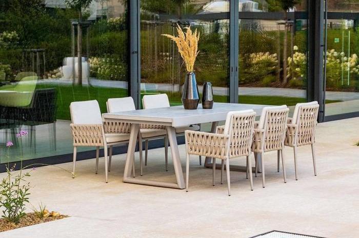 Сочетание стильного клубного стола с шестью удобными стульями HUG серо-бежевого цвета создает неповторимую атмосферу, делая каждый момент, проведенный на свежем воздухе, незабываемым. Стулья HUG обеспечивают исключительный комфорт, а их современный дизайн идеально сочетается с элегантным клубным столом.