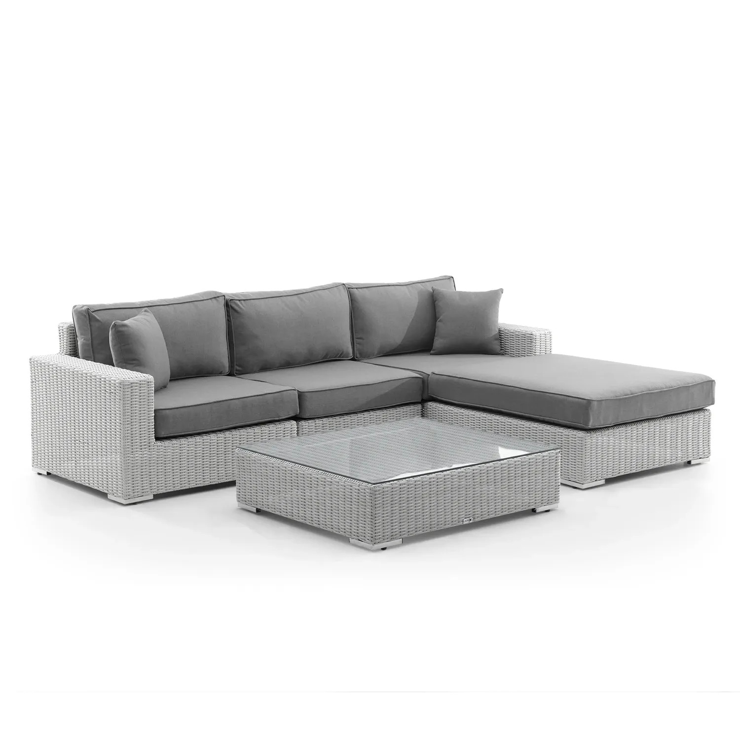 Комплект состоит из одного центрального и двух угловых элементов, из которых Вы можете создать удобный угловой дизайн и которые поместят всех Ваших друзей и семью во время праздничной вечеринки в саду.