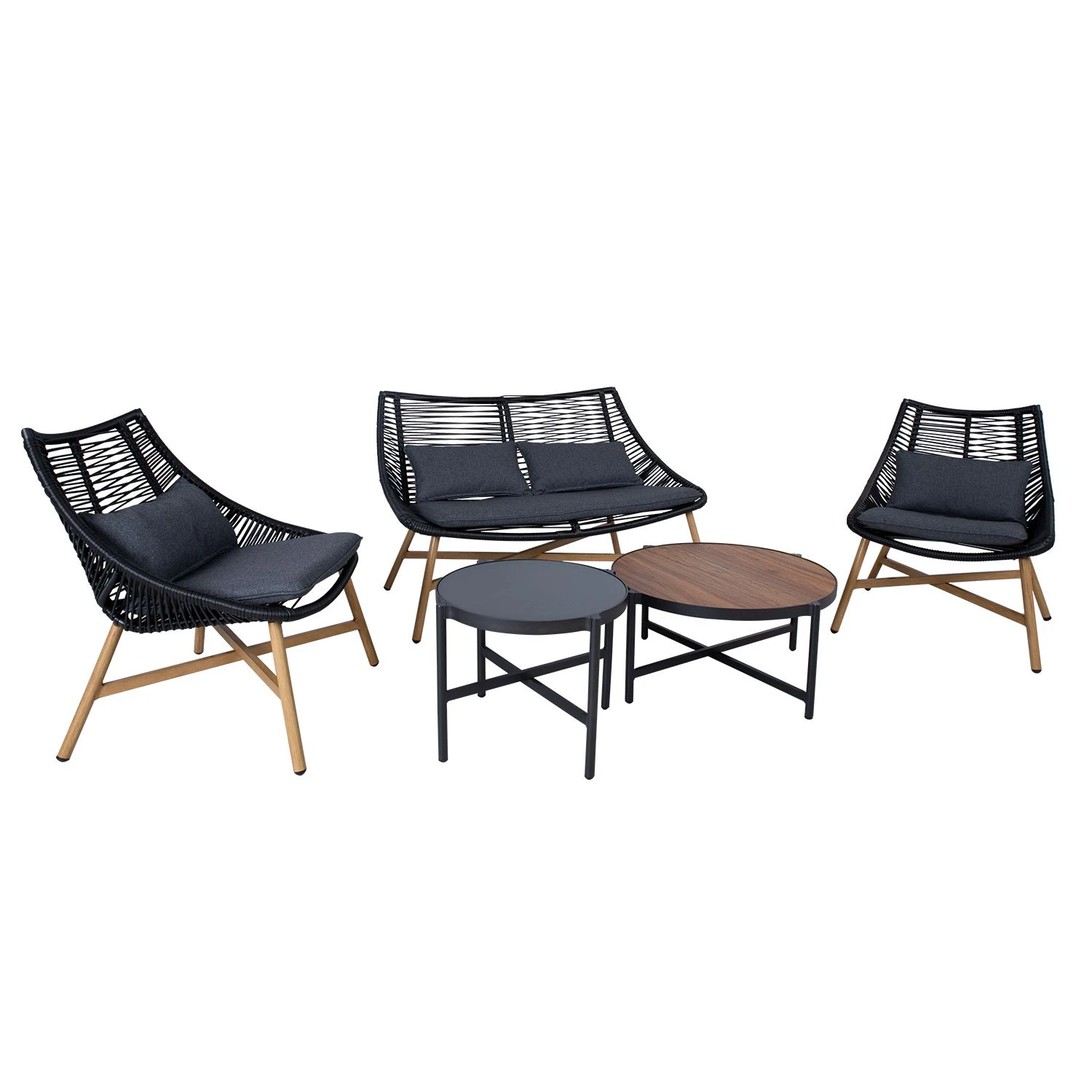 - Исключительный стиль: Дизайн HELSINKI является настоящим произведением искусства. Черное ПВХ плетение сидений дивана и стульев в сочетании с ножками в цвете тикового дерева и основой стула, окрашенных вручную кистью, создает элегантный и современный внешний вид. Темно-серые чехлы на подушках из полиэстера и порошковая краска темно-серого цвета на ножках и основании столов дополняют эстетику комплекта.
