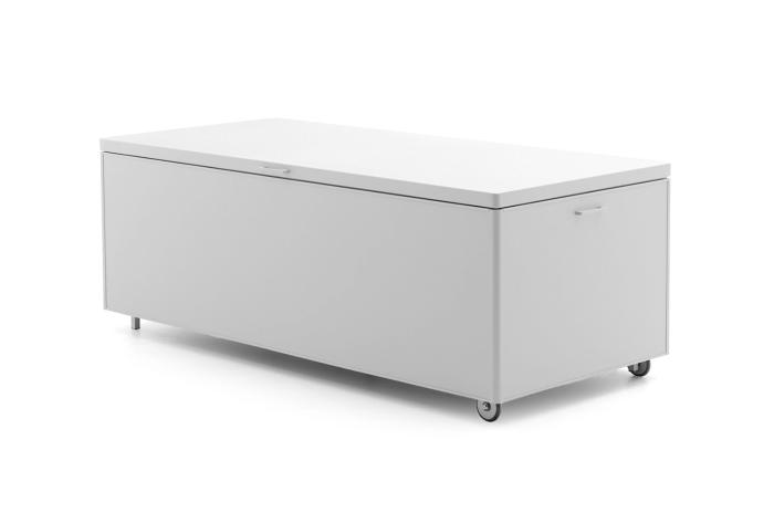Все коробки CONTENITORE имеют прочные приводы, благодаря которым можно плавно и надежно удерживать крышку в любой точке. Ящик может выполнять множество функций, помимо хранения. Правильно устроенной может быть кушетка, скамейка и стол. Вместительный сундук CONTENITORE вмещает абсолютно все-подушки, одеяла, пледы, а также игрушки и садовые принадлежности. Его можно легко перемещать в любое место. Благодаря прочному и прочному ящику для сада и за его пределами вы будете организовывать и преобразовывать пространство в саду,
