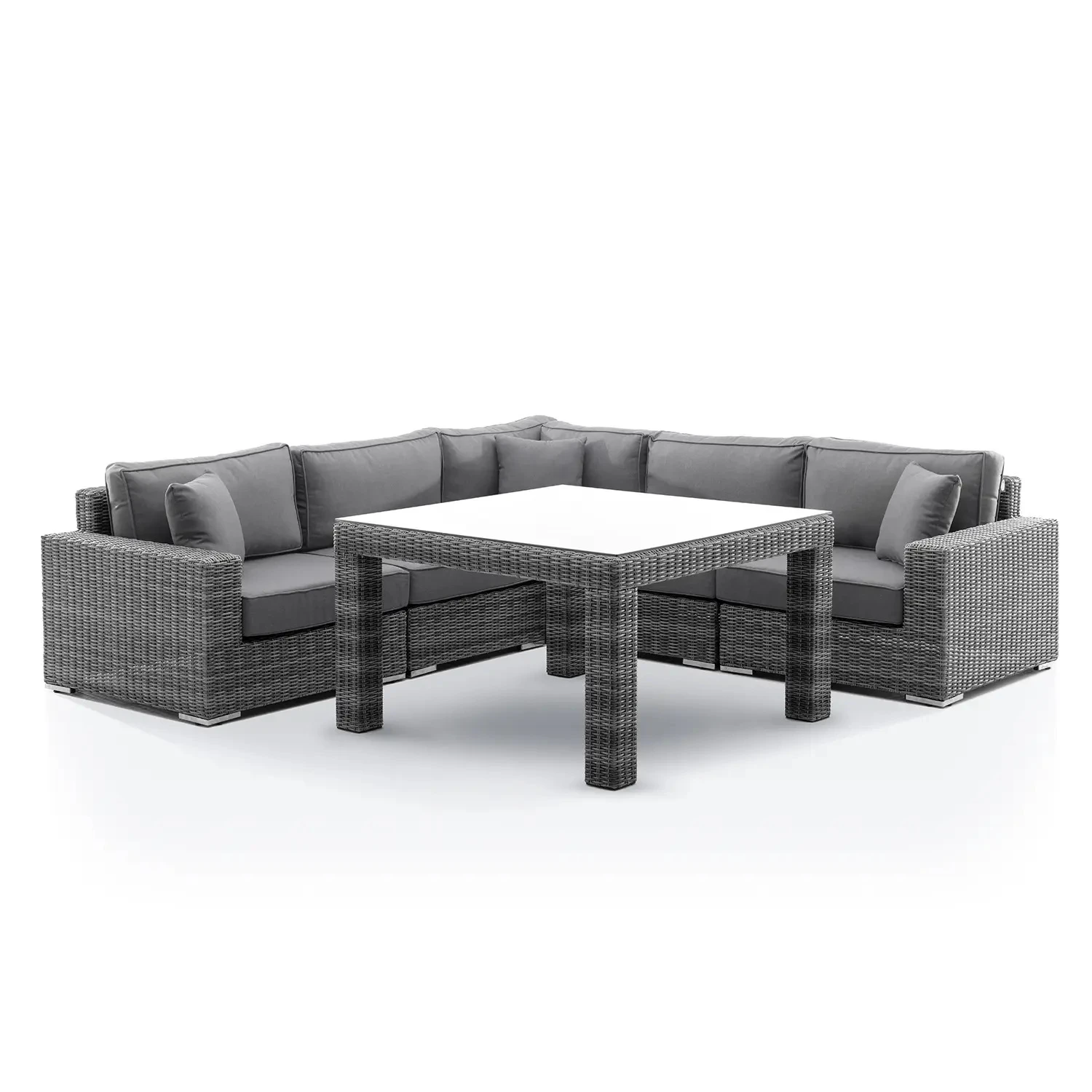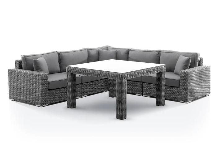 Стильная мебель для террасы MILANO III в сером цвете вызовет вау - фактор и будет радовать вас каждый день. Удобный уголок, мягкие серые подушечки и аккуратный квадратный столик с закаленным стеклом создают композицию, которая идеально смотрится на фоне зелени, деревьев и цветов. Проведение времени на свежем воздухе может стать настоящим удовольствием для чувств. Красивый дизайн, функциональность и тщательность исполнения делают этот набор садовой мебели для истинных энтузиастов нетривиальных, роскошных проектов.