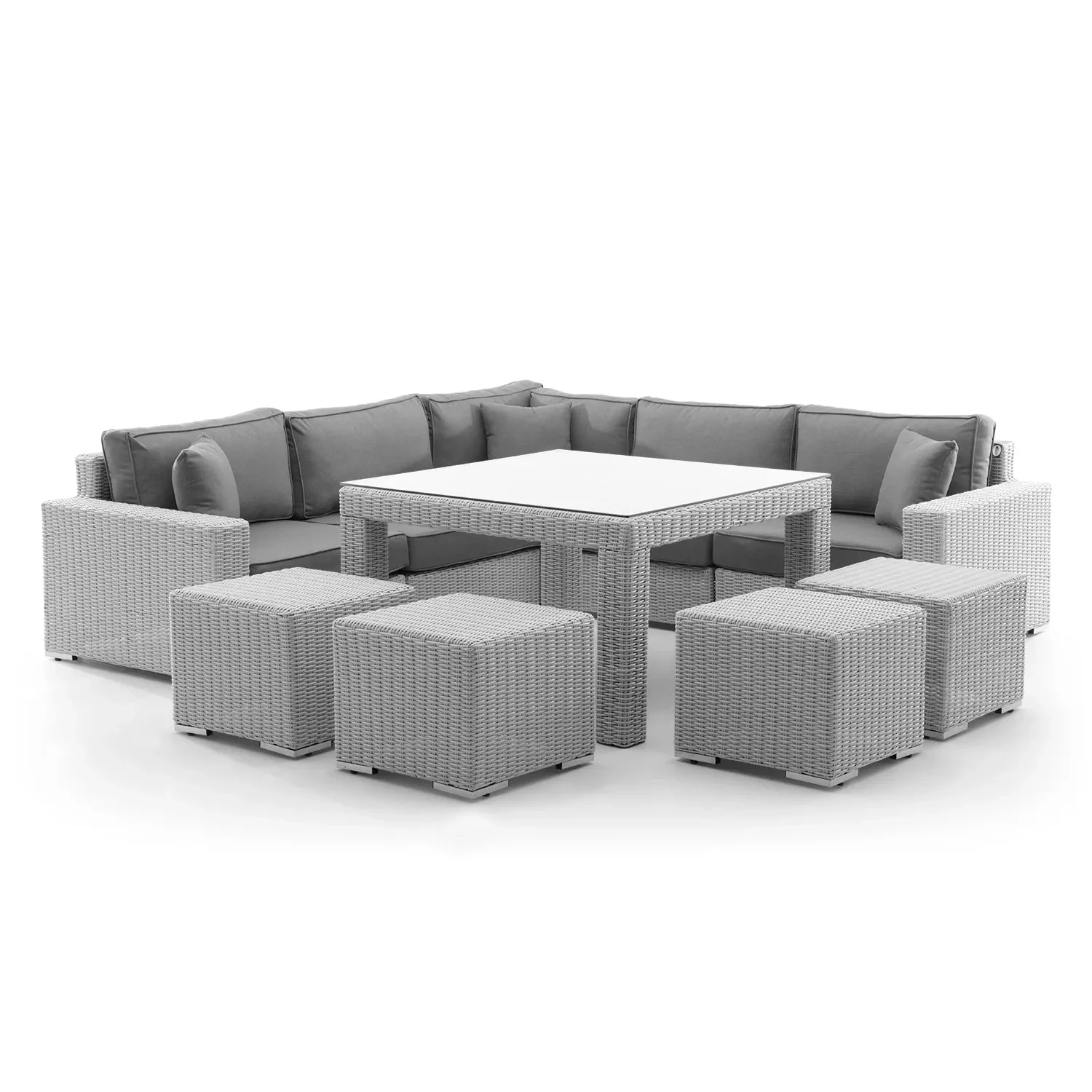 В комплект садовой мебели из техноротанга MILANO IV входят два центральных элемента и целых три угла, из которых вы можете создать удобный угловой диван, вмещающий всех ваших друзей и семью во время праздничной вечеринки в саду. Все элементы мебели имеют алюминиевую конструкцию с порошковым покрытием для легкого веса, прочности и полной устойчивости к ржавчине. Удобные сиденья и подушки изготовлены из прочной ткани с тефлоновым покрытием, устойчивой к неблагоприятным погодным условиям. Наполнитель в сиденьях - быстросохнущая губка. Это очень удобное и практичное решение. Важно отметить, что набор из технораттана не требует особого ухода или специальной пропитки. Они могут спокойно стоять на улице целый год и все равно будут как новые. На фоне приглушенного белого красиво смотрится журнальный столик с стойкой из закаленного стекла, устойчивой к царапинам. Вы можете быть уверены, что дождь, ультрафиолетовое излучение не окажут негативного влияния на внешний вид мебели. Все это создает приятное пространство, где вы можете удобно сидеть, приятно провести время за чашкой чая с видом на сад.