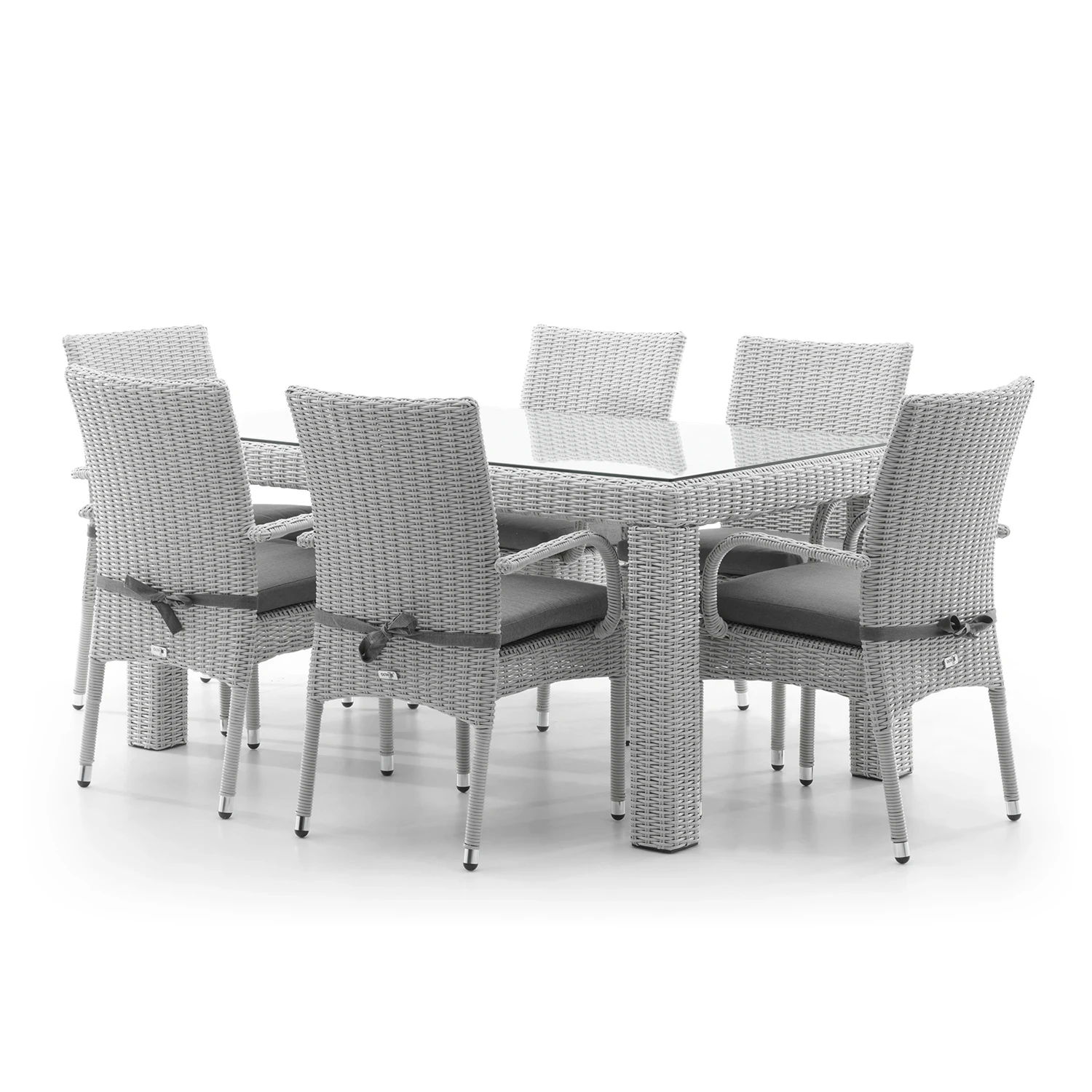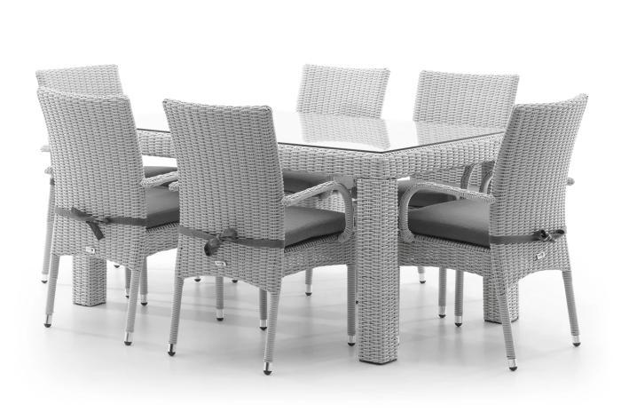 В комплект садовой мебели из искусственного ротанга RAPALLO 160 входят стол RAPALLO и шесть стульев TRAMONTO. Основным строительным блоком всех компонентов является искусственного ротанга - материал, устойчивый к воздействию внешних факторов, таких как экстремальные температуры, влажность или ультрафиолетовое излучение. Стол укрепляется стеклом из закаленного стекла – на него можно без опасений ставить горячую и тяжелую посуду. Стулья, в свою очередь, восхищают своим комфортом, который обеспечивают идеально очерченные подлокотники и мягкие сиденья из пенопласта.