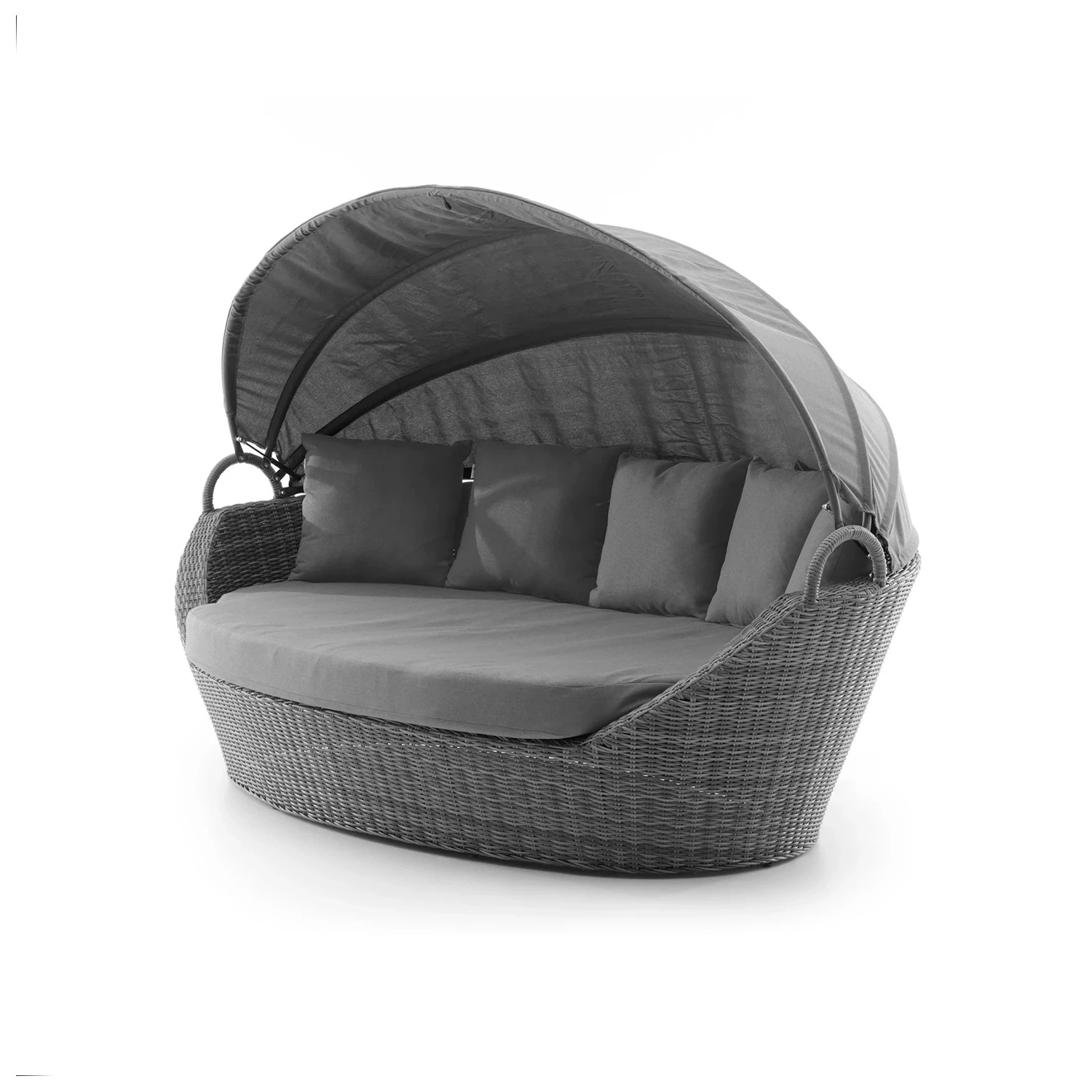 Диван PORTOFINO создает ощущение уюта в романтическом стиле. В серой цветовой гамме он выглядит очень элегантно и подчеркивает зелень сада. Диван PORTOFINO отличается высоким качеством и эстетикой исполнения. PORTOFINO имеет алюминиевую раму с порошковым покрытием, прочную, легкую и устойчивую к ржавчине. Полиэтиленовая оплетка полностью устойчива к переменным погодным условиям, ультрафиолетовым лучам и высоким и низким температурам. PORTOFINO - это продукт высочайшего качества, который удовлетворит даже самых требовательных. Диваны PORTOFINO высоко ценятся клиентами за практичное и многократное использование. Диван можно использовать как место для сидения на солнце или как удобную кровать для дневного сна. Диван PORTOFINO имеет красивый навес, который идеально защитит нас от ветра и окутает желанной тенью.