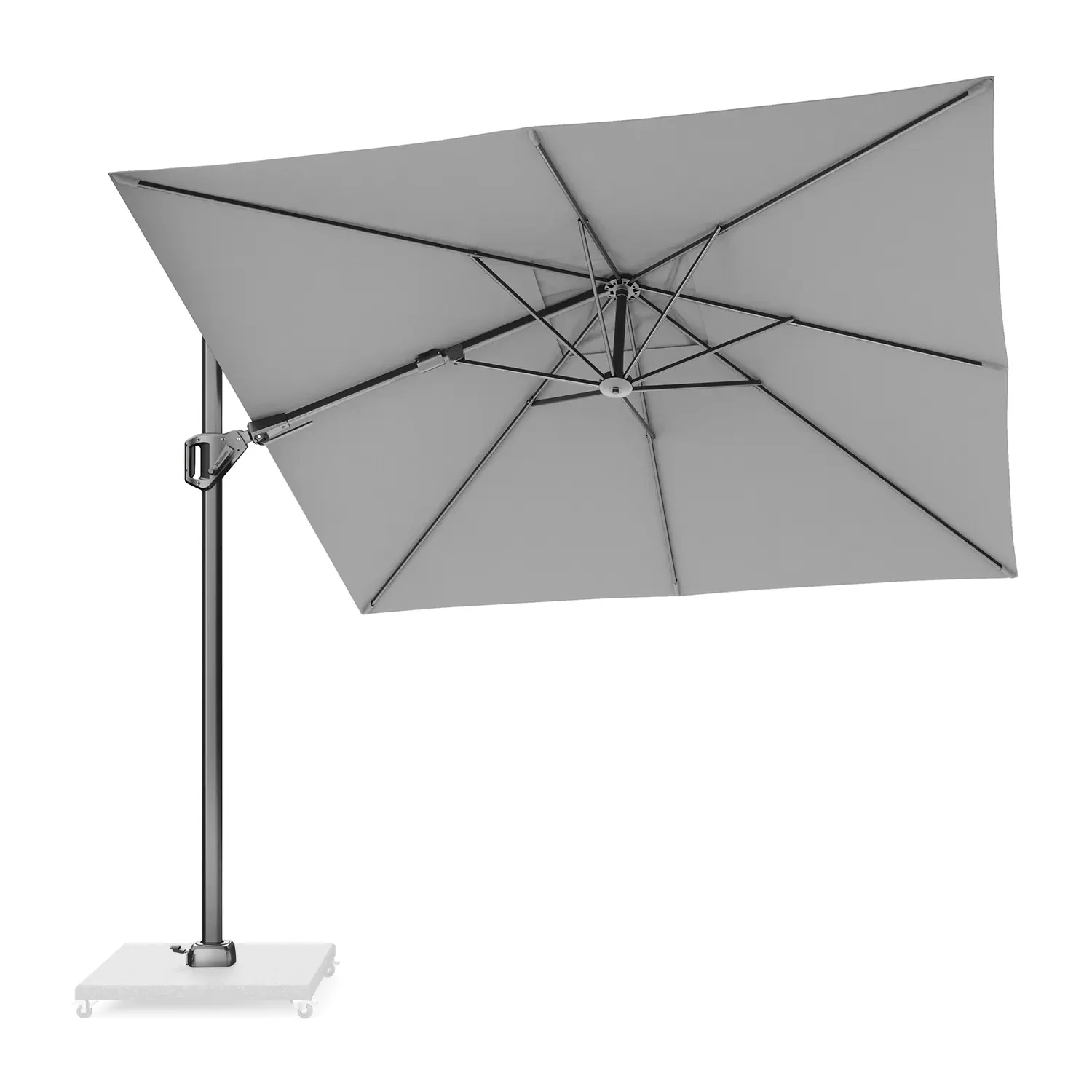Voyager T² оснащен полностью алюминиевой мачтой и прочными стальными ребрами. Такое соединение обеспечивает прочную конструкцию. Этот зонт легко поворачивается на 360° или наклоняется назад и из стороны в сторону.