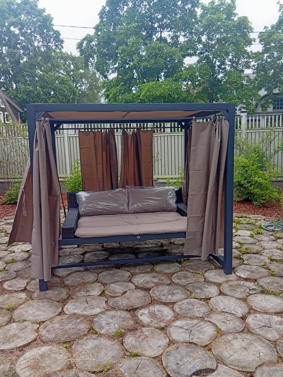 - Качели и диваны — крупногабаритные изделия с каркасами из металла, дерева или композитных материалов;