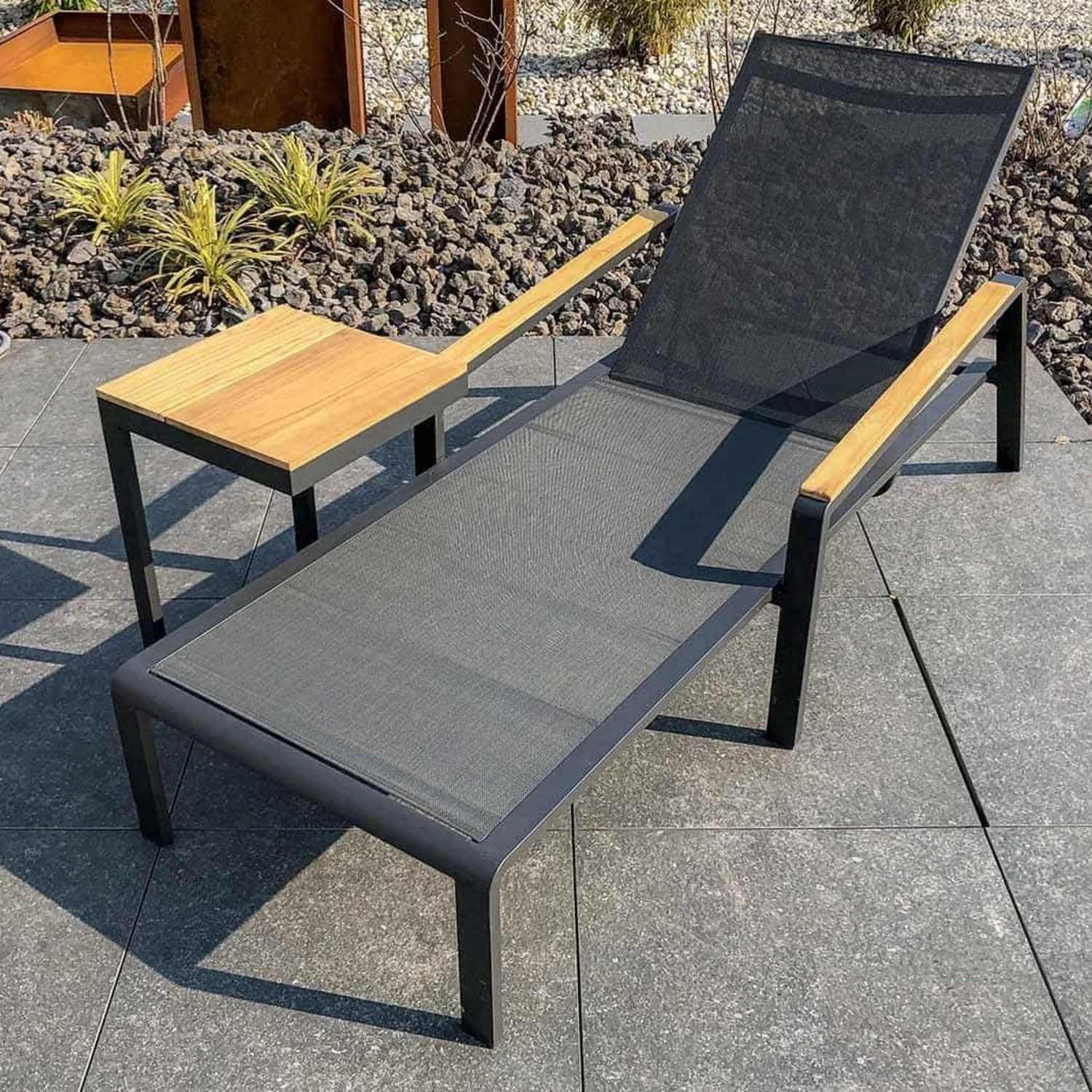 Стильный шезлонг CORDOBA Teak изготовлен из высококачественного алюминия – материала, который отлично подходит для требовательной наружной среды. Высококачественный металл полностью устойчив к переменным погодным условиям (ультрафиолетовому излучению, экстремальным температурам и воде) и сохраняет свою безупречную форму, несмотря на интенсивное использование. Прохладный, металлический дизайн был разнообразен элементами из тикового дерева. Тонкий декор придает дизайну теплый характер и оригинальность.