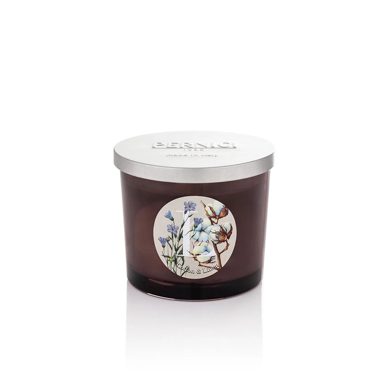Ароматическая свеча Cotton & Linen (Хлопок и Лён) от старейшей итальянской семейной фабрики Cereria Pernici, знаменитой на весь мир своим уникальным производством. Свеча изготовлена вручную, из натурального соевого воска, используемого в пищевой промышленности, поэтому она не содержит никаких токсичных элементов и вредных веществ. Фитиль выполнен из сертифицированного натурального хлопка.